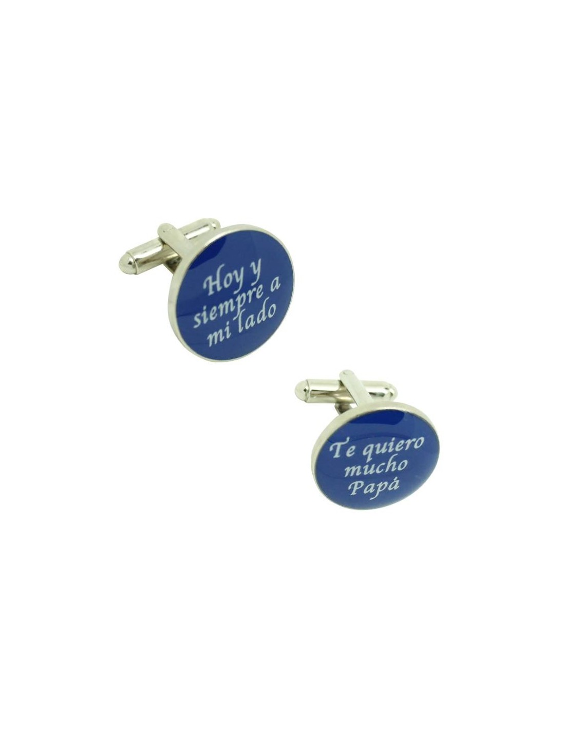 Gemelos para camisa de Boda con frase Hoy y Siempre a mi lado y Te quiero mucho Papá realizados en Alta calidad de acero y bañado en rodio color azul.
