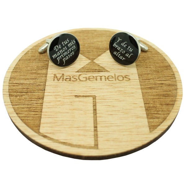Gemelos para camisa con frase boda De tus manos mis primeros pasos Y de tu brazo al altar - negro