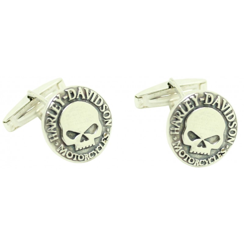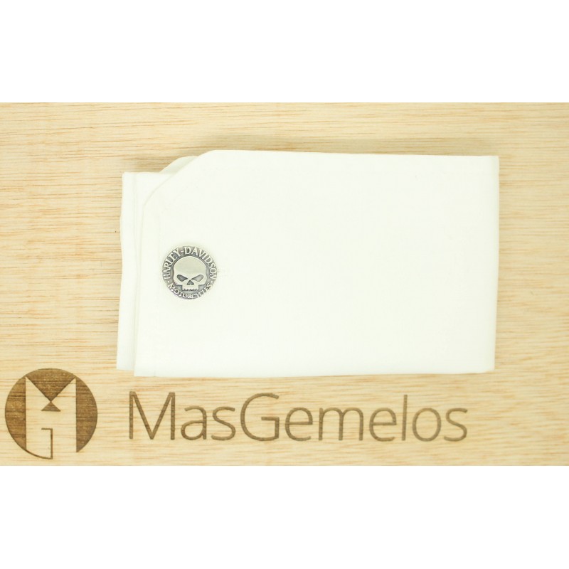 Gemelos para camisa Harley Davidson SKULL realizados en Plata de Ley 925 y realizado a mano que representan el diseño del fabricante de motos más conocido en Estados Unidos y a la vez la que es considerada como una de las marcas más emblemáticas de motocicletas del mundo.