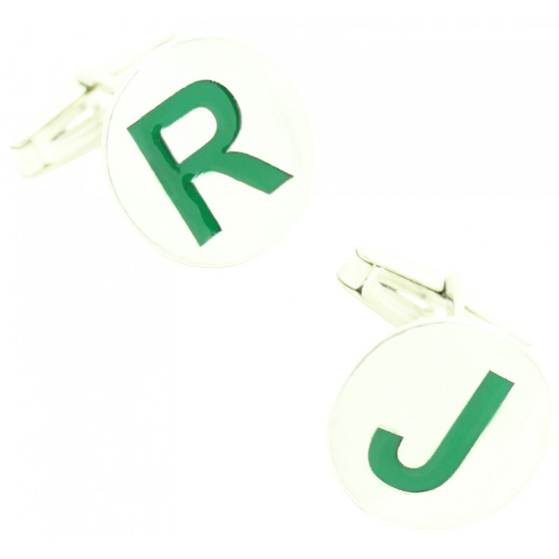 combinacion gemelos R y J esmaltado plata de ley color verde