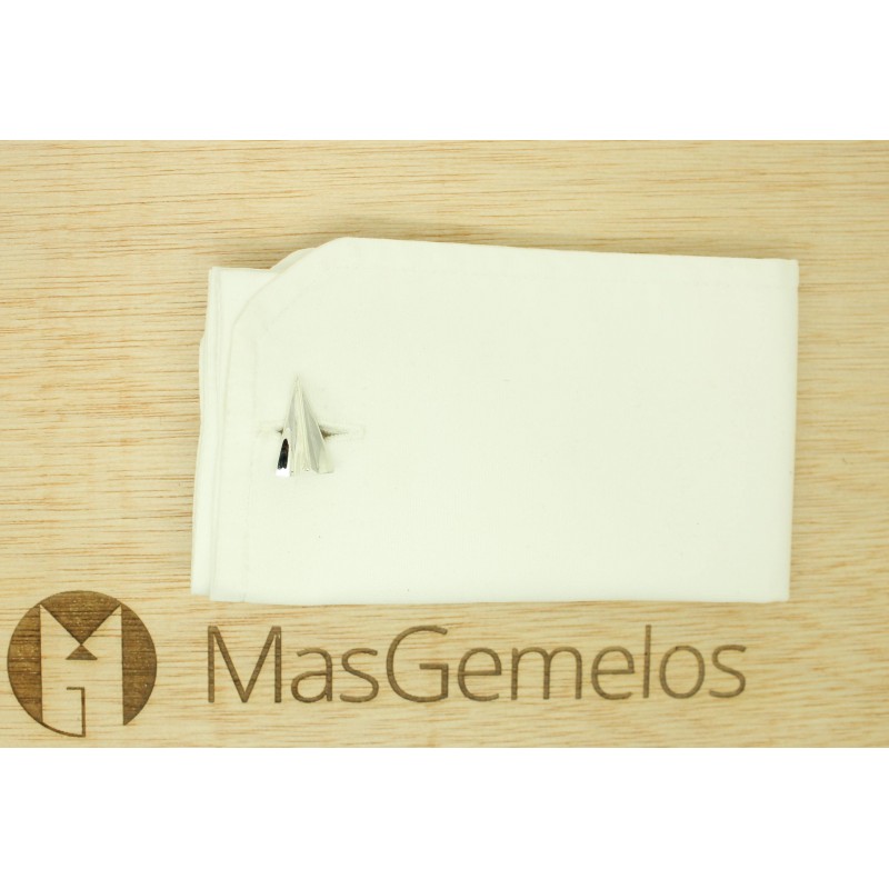 Gemelos para camisa de Avión de papel realizados en Plata de Ley 925 artesanalmente, que representa la forma de avión de papel que se utilizaba con un papel doblado en forma de avión.
