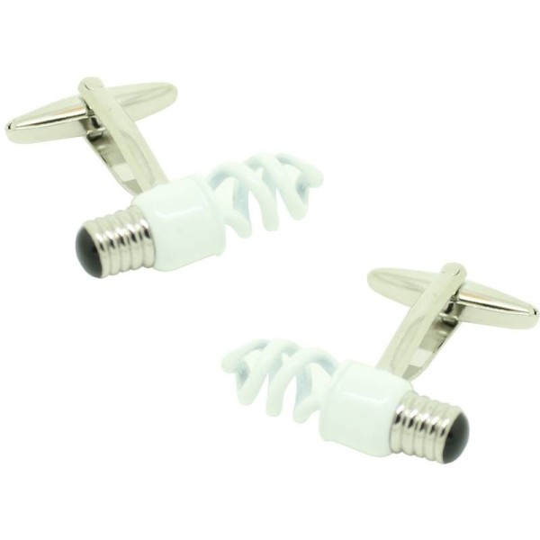 Gemelos para camisa bombilla eco blanca realizados en acero y bañado en rodio que representa la forma de una bombilla en 3D.