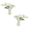 Gemelos para camisa Símbolo medicina vara de Esculapio realizados en acero y bañado en rodio que representa el escudo de medicina que es la forma de vara de Esculapio