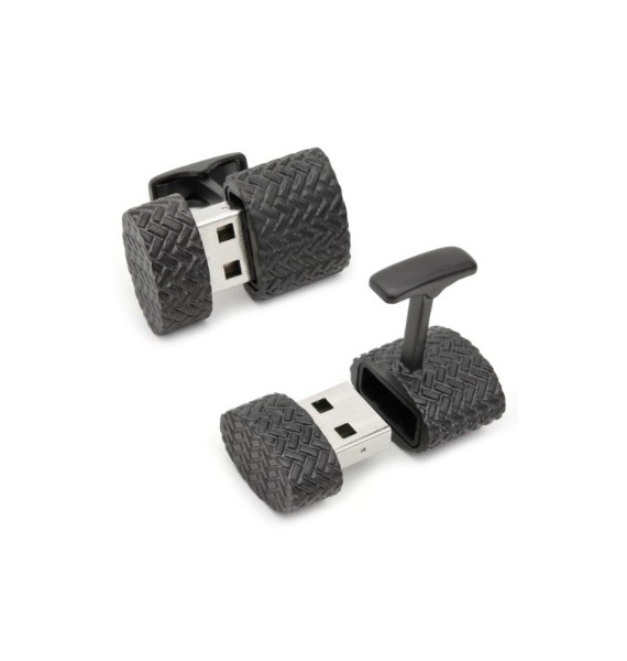 Gemelos para camisa USB 4GB Ovalado Tejido de Hierro Negro