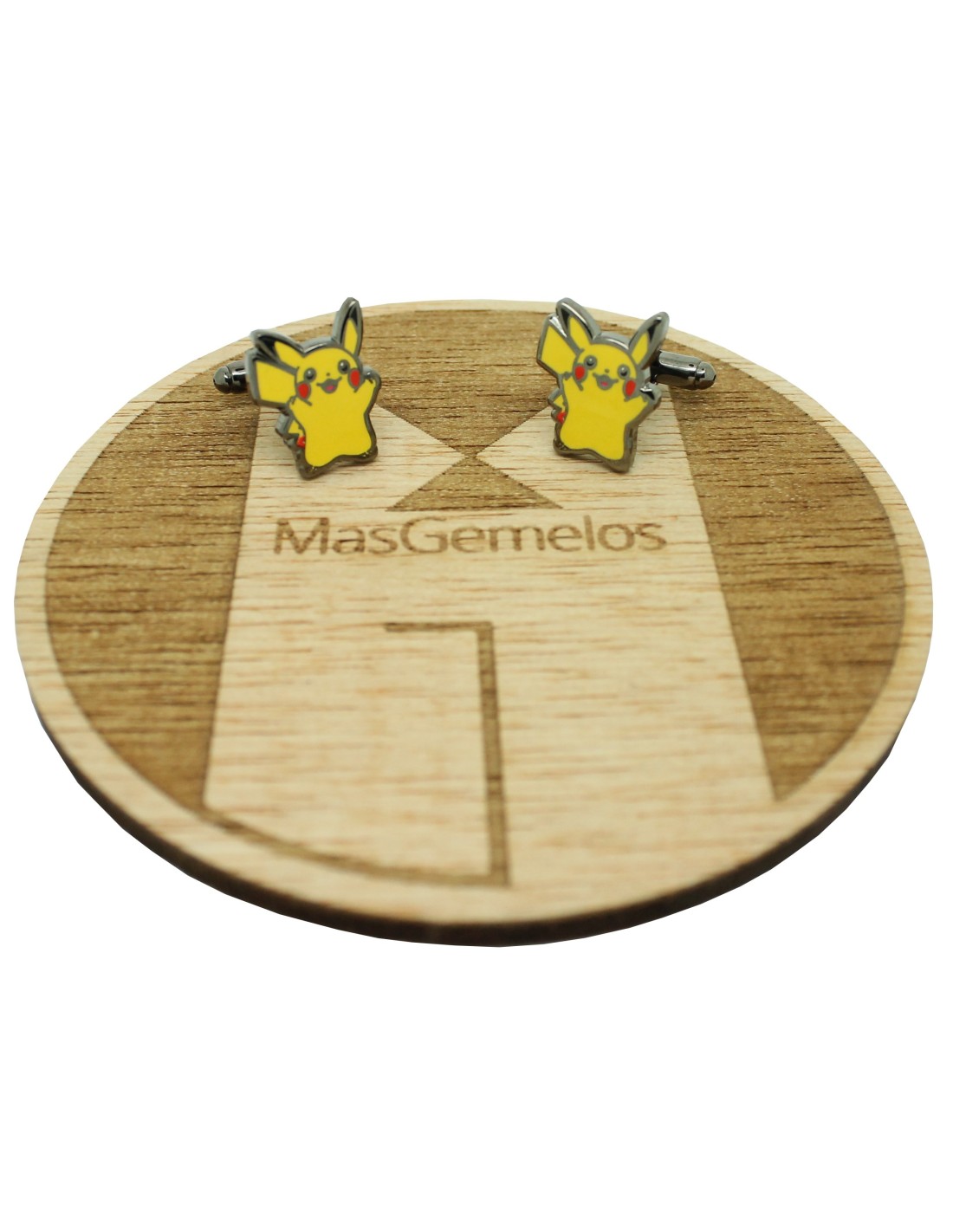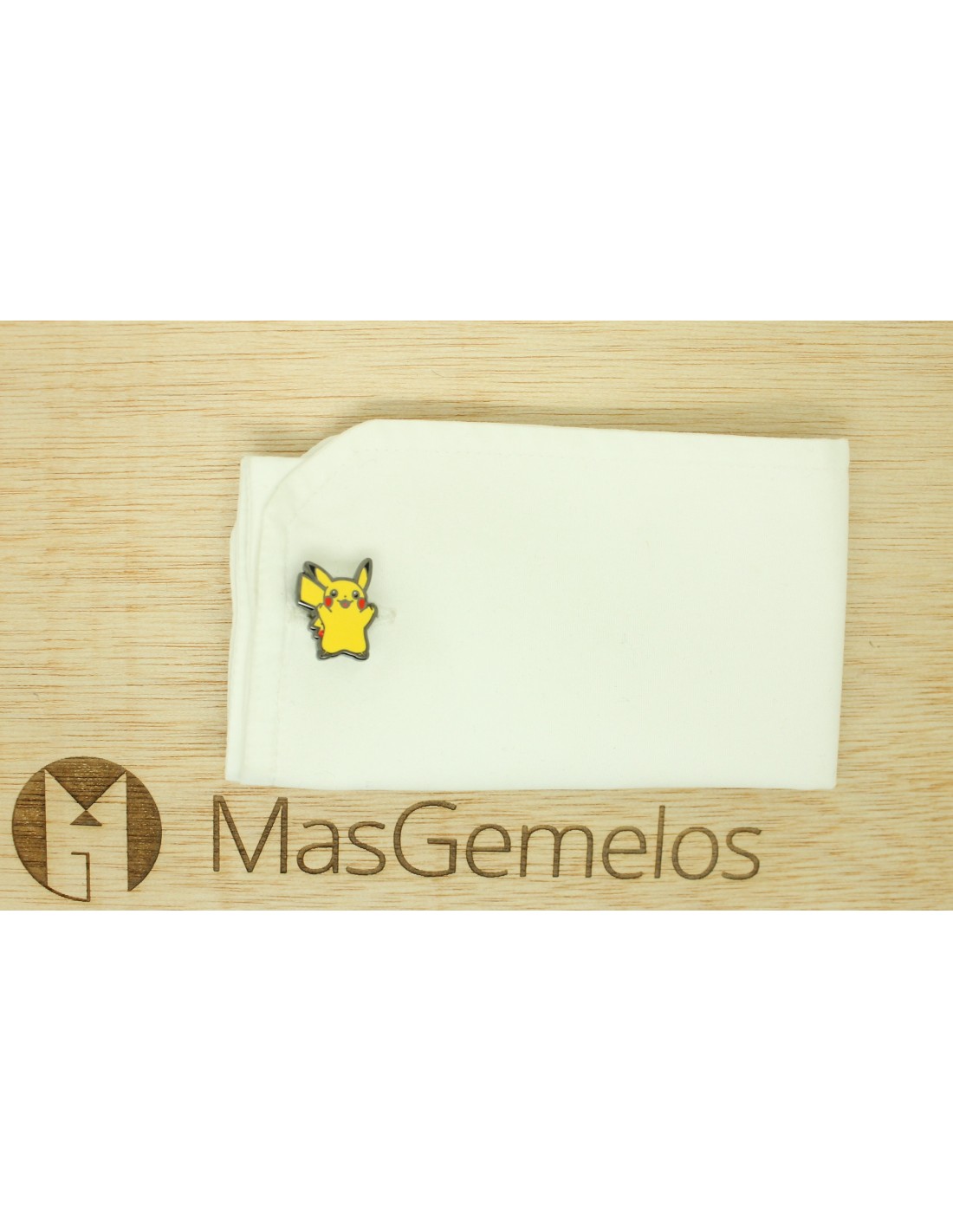 Gemelos para camisa Picachu realizados en acero y bañado en rodio que representa el Videojuego de Picachu de Pokémon. Su nombre proviene de la unión de las palabrasen japonés pika, que es el nombre al que pertenecen conejos y liebres; Picachu almacena una gran cantidad de electricidad en sus mejillas, estas parecen cargarse eléctricamente durante la noche mientras duerme; y su alimentación procede de bayas y manzanas en estado salvaje.