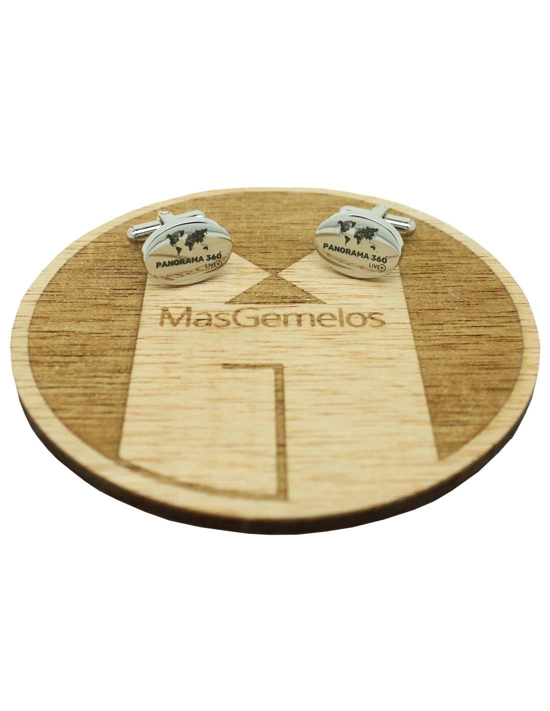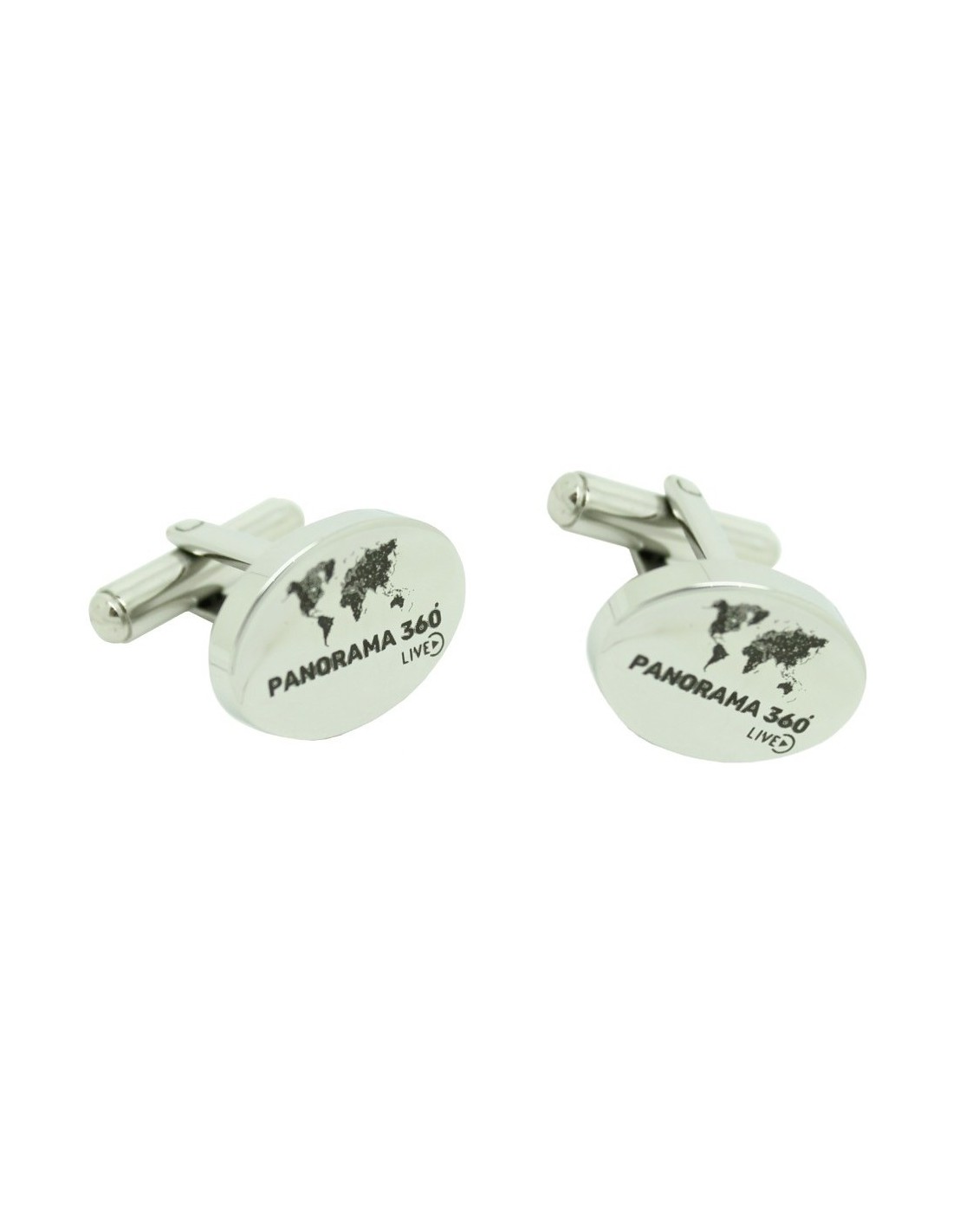 Gemelos para camisa ovalado de acero personalizados Emblema empresa Panorama 360 posibilidad de realizar otros diseños a medida en acero