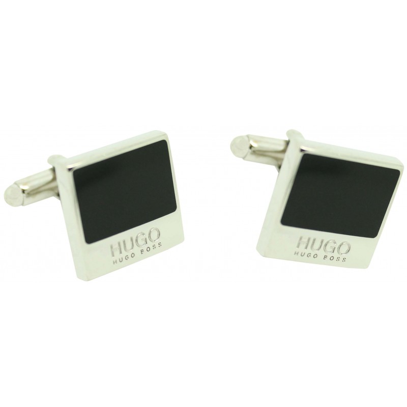 Gemelos para camisa con forma cuadrada y con esmalte negro de Hugo Boss by HUGO RED fabricado en latón y bañado en Rodio de la más Alta-calidad.