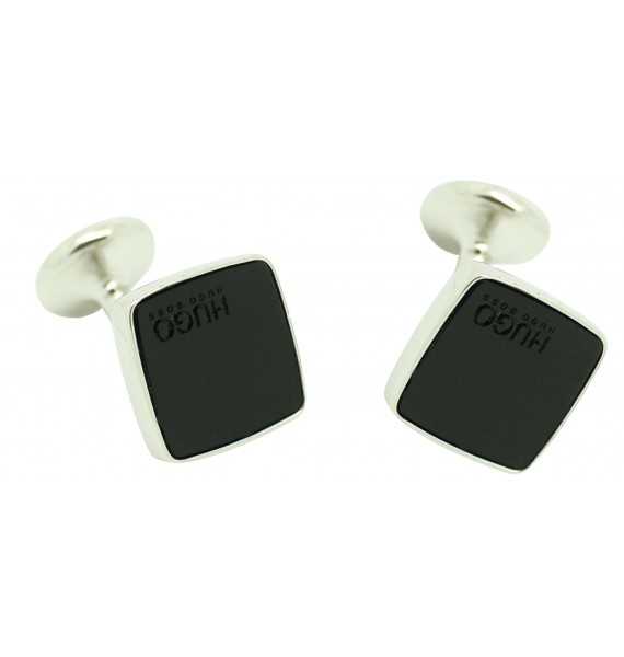 Gemelos para camisa con forma redondeado y con esmalte negro de Hugo Boss by HUGO RED fabricado en latón y bañado en Rodio de la más Alta-calidad.