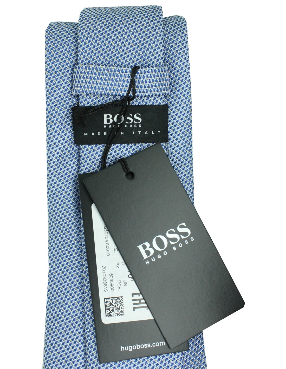 Corbata de HUGO BOSS azul claro fabricado en seda de la más Alta-calidad. Corbata Hugo Boss azul rayas con microlunares rombos - HUGO BOSS