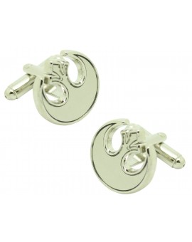 Gemelos para camisa Alianza rebelde realizados en acero y bañado en rodio que representa el escudo de la Alianza rebelde en color plateado de Star Wars