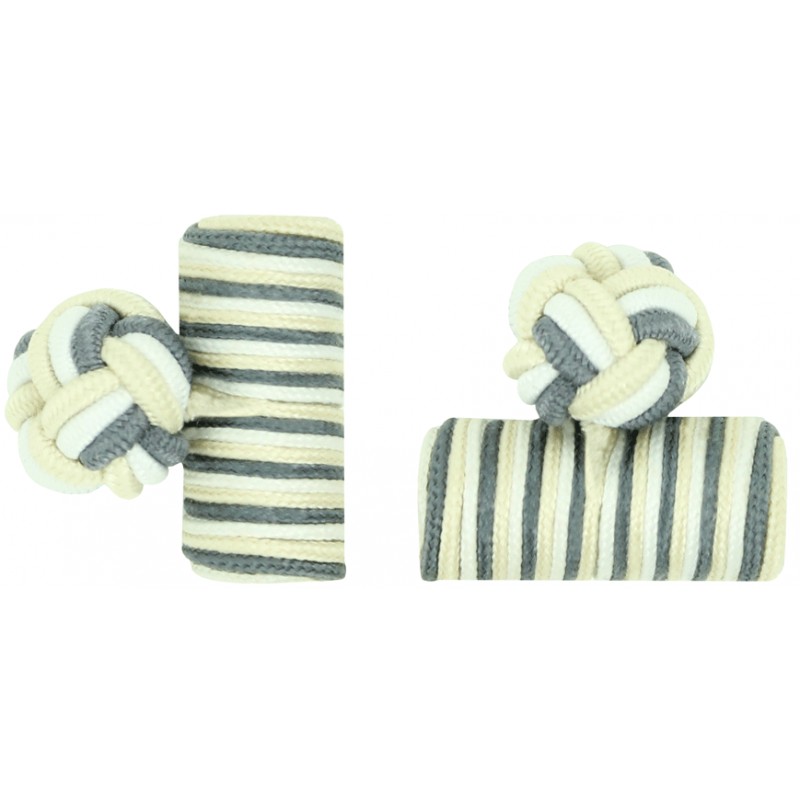 Boutons de manchette Baril élastique gris, blanc et blanc cassé