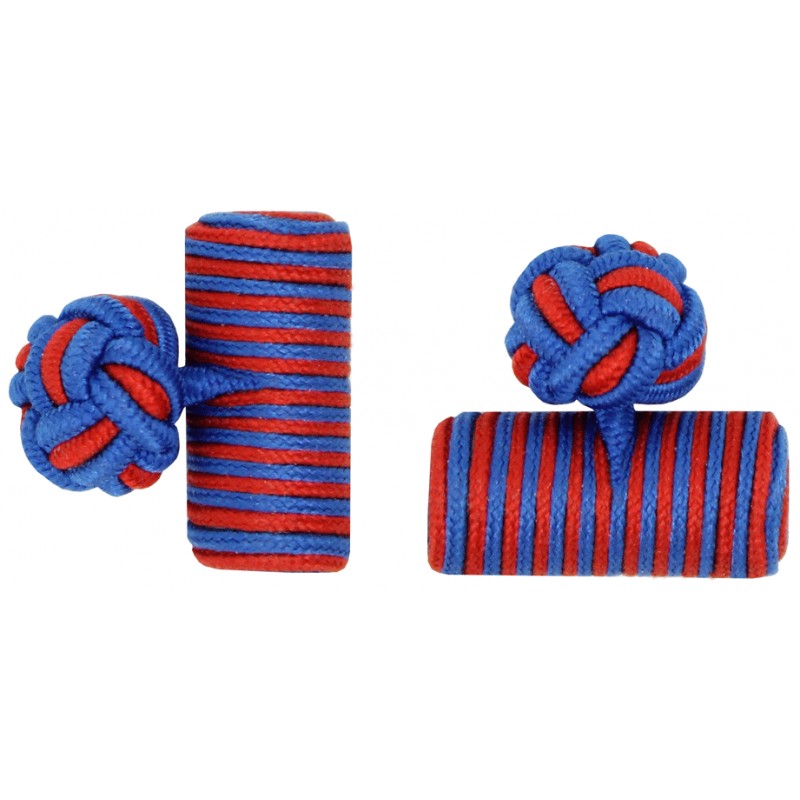 Boutons de manchette baril élastique bleu cobalt et rouge foncé