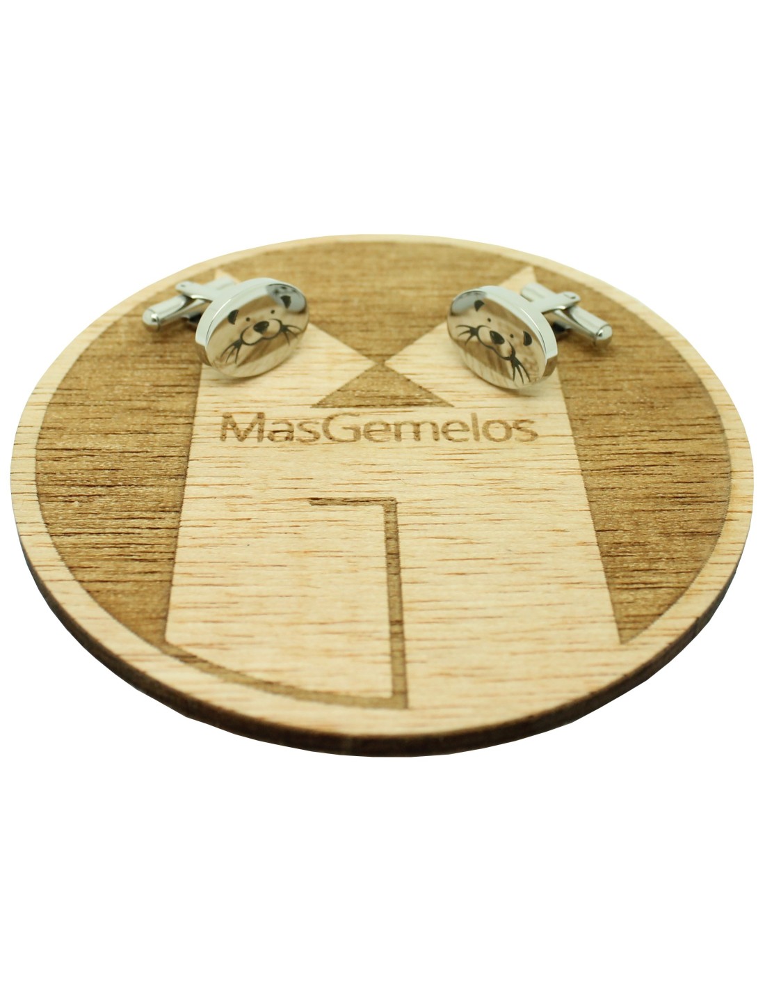 Boutons de manchette ovales en acier personnalisés avec un visage de chien
