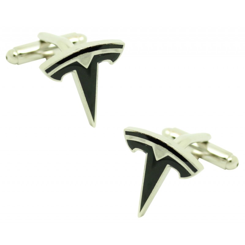 Des jumelles pour chemise Tesla en acier et en rhodium, émaillées en noir par le premier constructeur de véhicules électriques au monde.