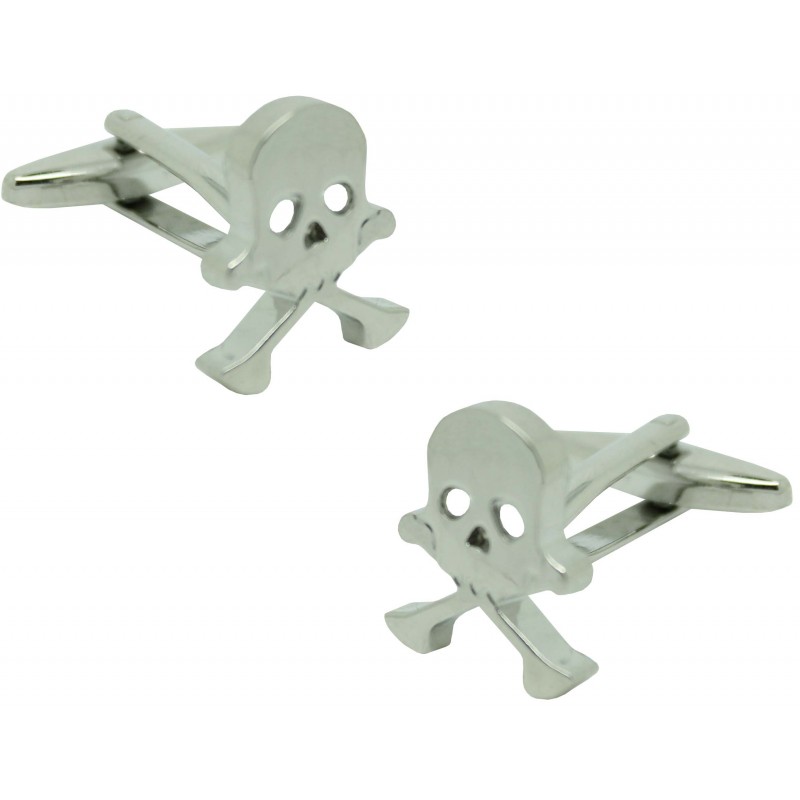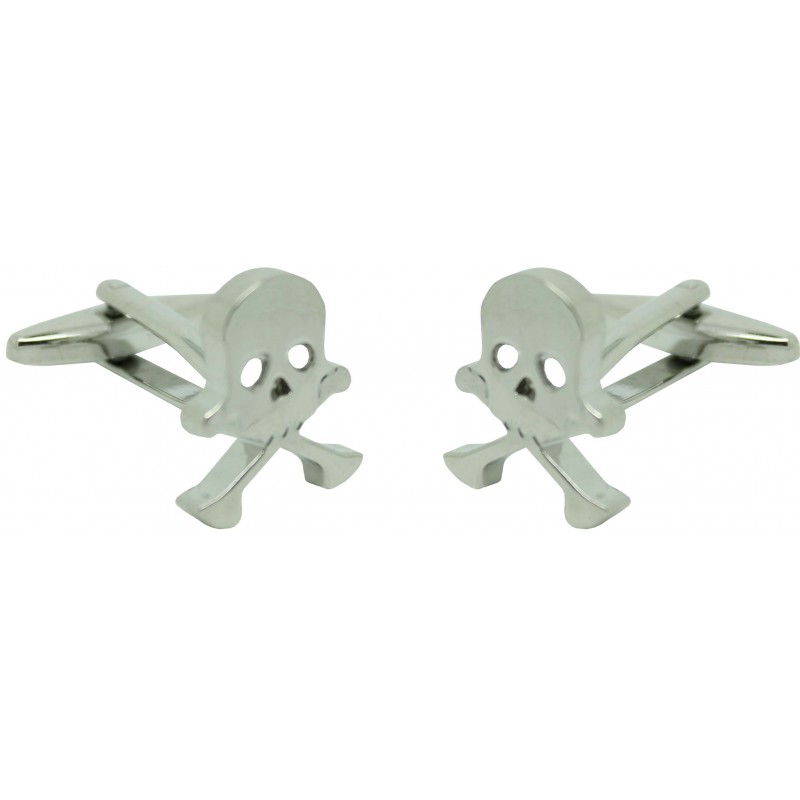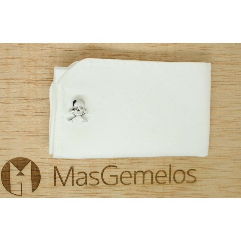 Des jumeaux pour chemise à crâne avec des os originaux réalisés en acier et revêtus de rhodium représentant un crâne original.