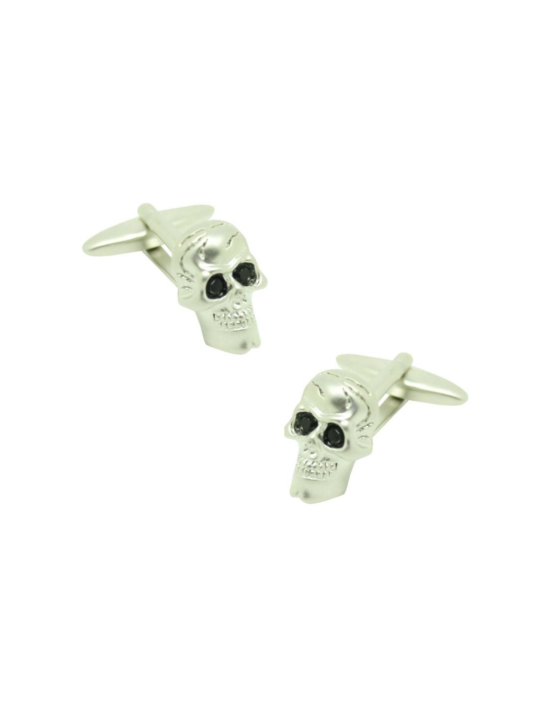 Des jumeaux pour chemise à crâne avec des os originaux réalisés en acier et revêtus de rhodium représentant un crâne original.