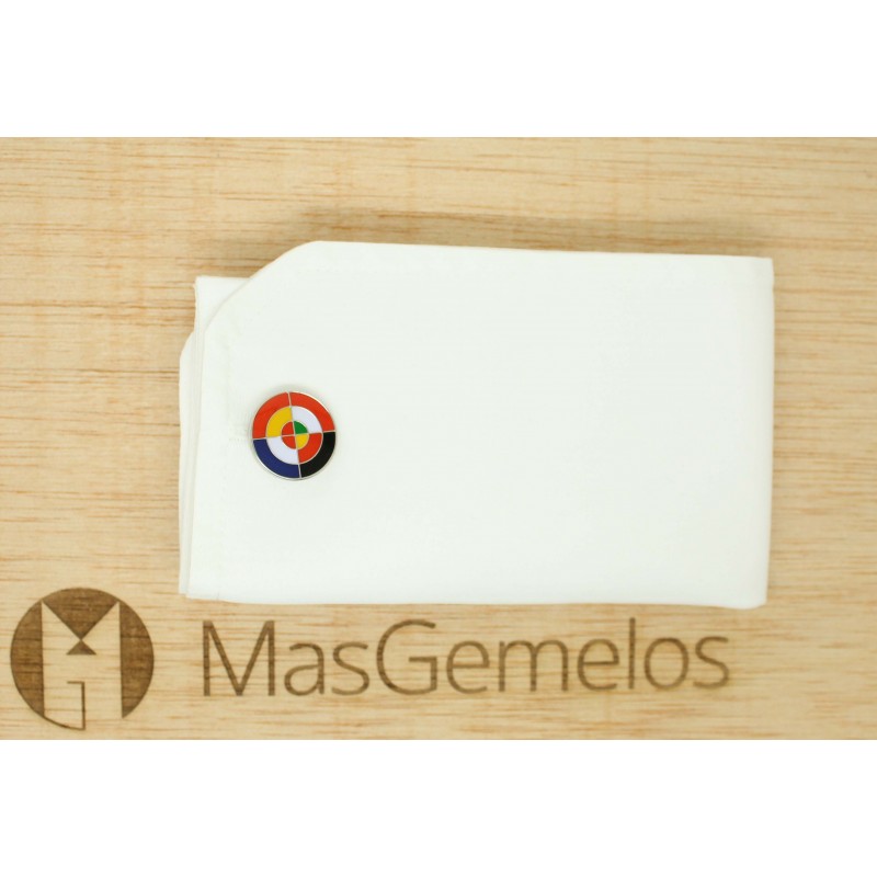 Des jumeaux pour la chemise drapeau Eurofighter réalisé en acier et recouvert de rhodium qui représente le drapeau des quatre pays qui promeuvent le projet de l'avion de combat dans le secteur de la défense européenne: l'Espagne, la France, l'Italie et l'Allemagne.