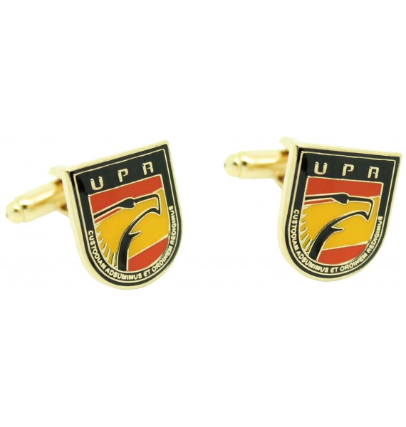 Les jumeaux pour chemise Unité de prévention et de réaction UPR réalisé en acier et baigné en rhodium doré qui représente l'unité de la Police nationale qui a été constituée pour aider les unités de l'UIP étant son intervention dans de graves situations de crise impliquées dans de grandes opérations policières ainsi que dans des opérations de trafic de drogue.
