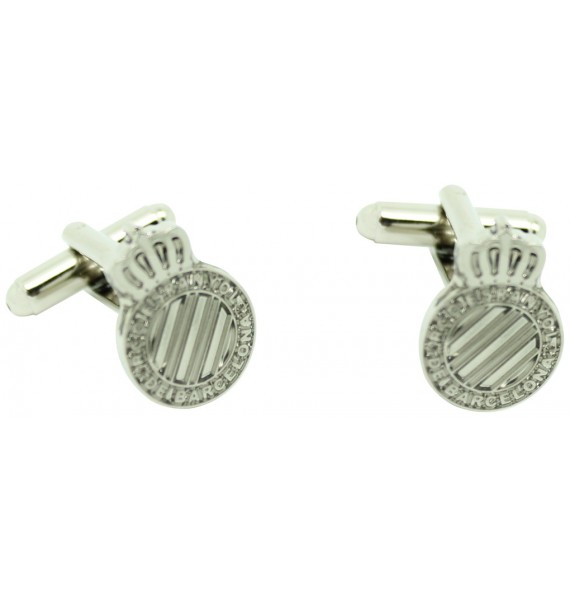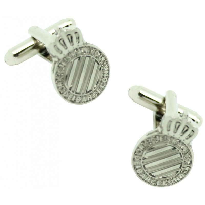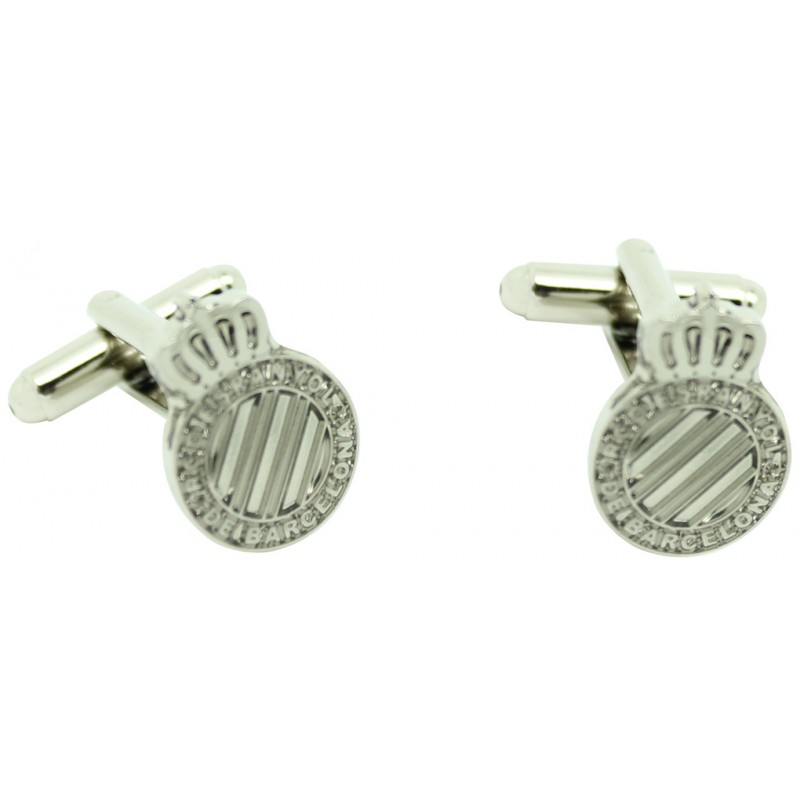 Des jumelles pour chemise Le Real Club Deportivo Espanyol en argent, équipe de football de la ligue espagnole basée à Barcelone, Espagne dont la première équipe joue au RCDE Stadium situé entre les localités de Cornellá de Llobregat et El Prat de Llobregat.