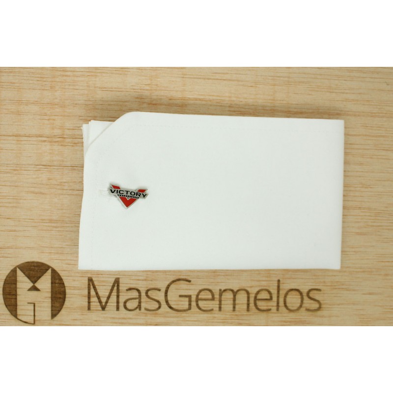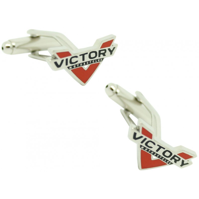 Des jumeaux pour Victory Motorcycles réalisés en acier et revêtus de rhodium, de couleur rouge qui représentent l'emblème du fabricant de motos américaines de l'Iowa qui dispose d'une large gamme de motos pour les amateurs de motos.