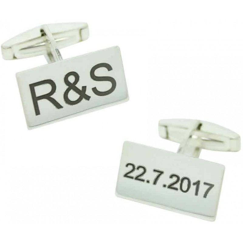 Boutons de manchette rectangulaires en argent 925 initiales et date