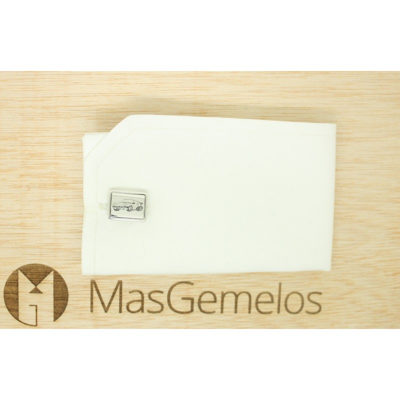 Boutons de manchette carrés avec gravure d'image Porsche en argent sterling 925