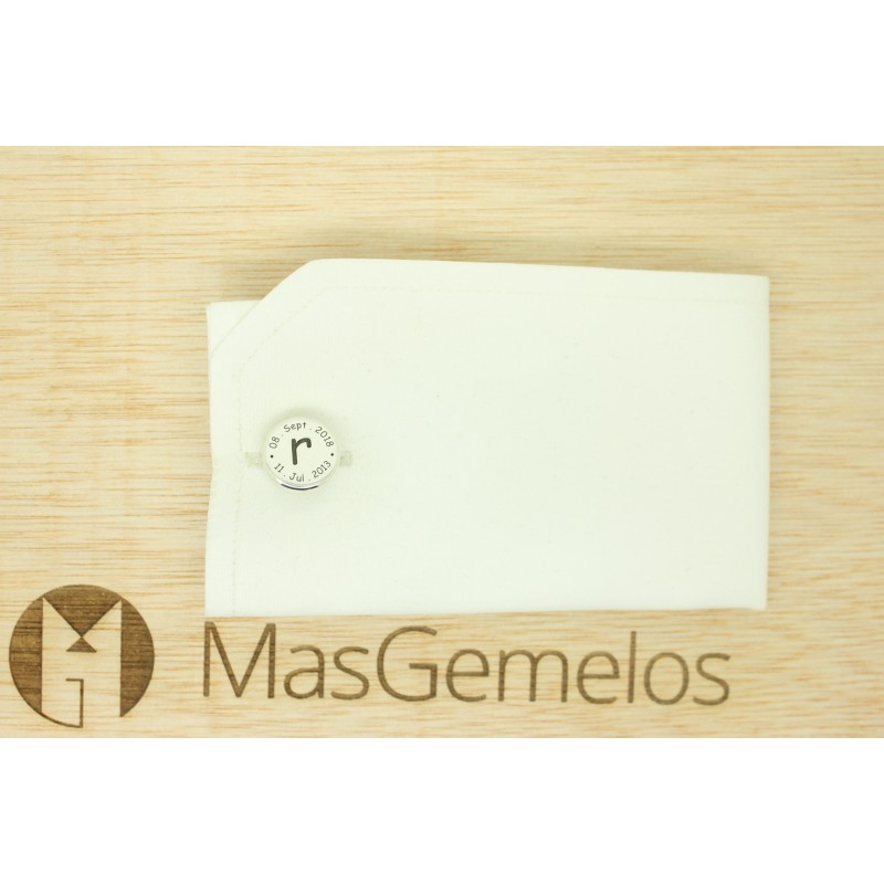 Boutons de manchette ronds en argent sterling 925 avec initiale et date