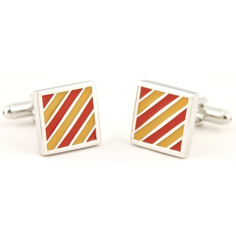 Boutons de manchette nœud émaillé rouge et jaune