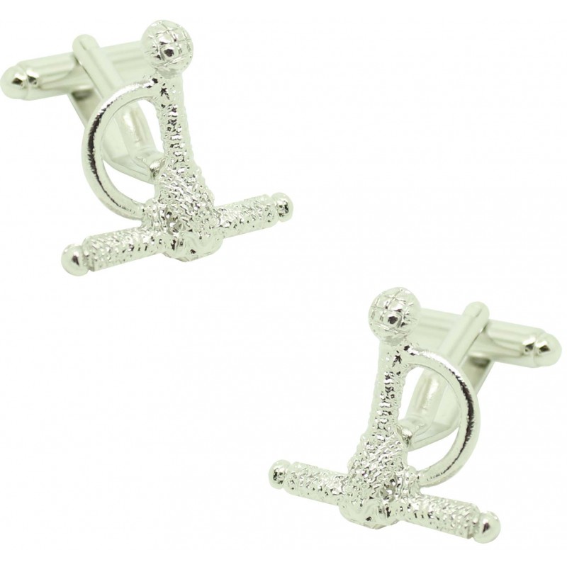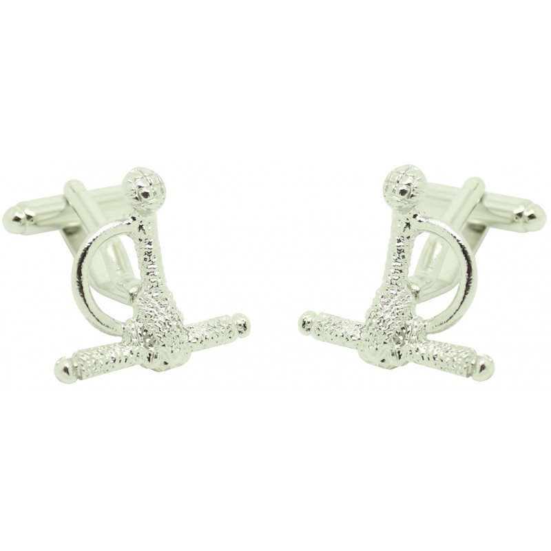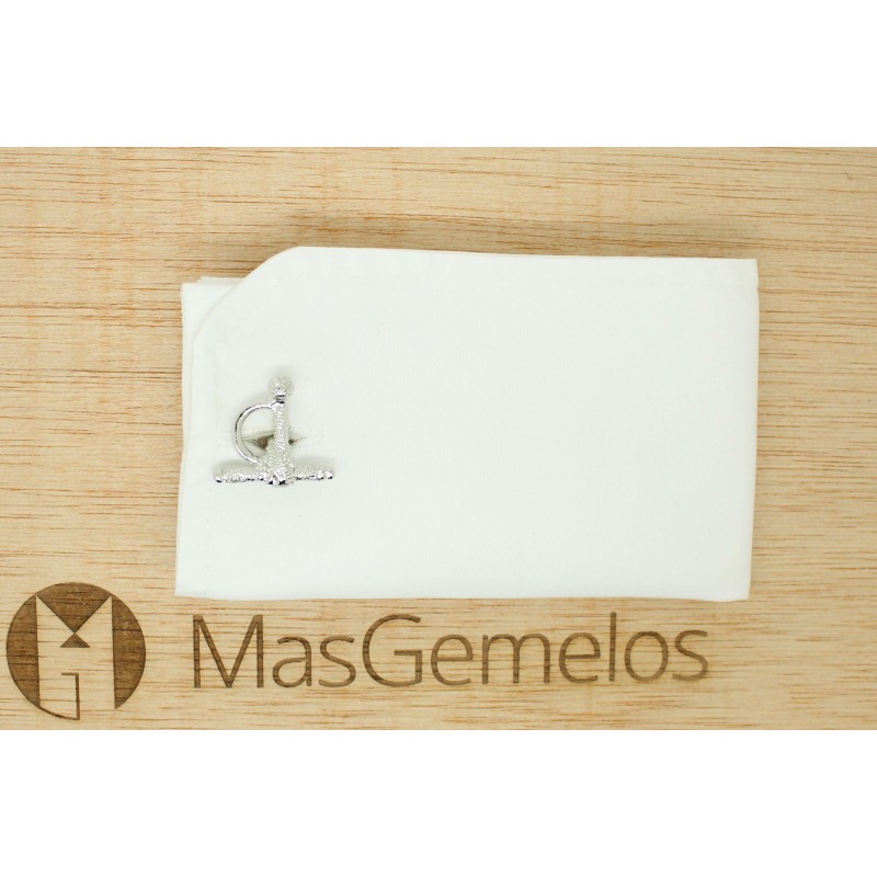 Des jumeaux pour chemise de stock réalisé en acier et baigné en rhodium qui représente le stock porté par le torero lors des courses de taureaux.