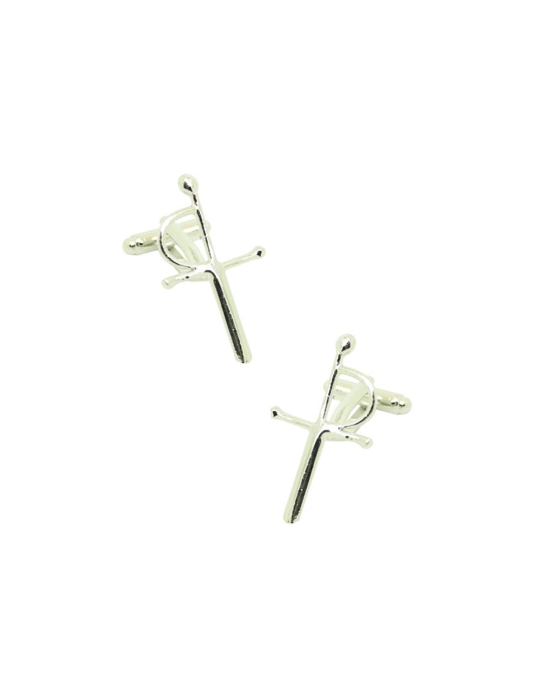 Des jumeaux pour chemise de stock réalisé en acier et baigné en rhodium qui représente le stock porté par le torero lors des courses de taureaux.