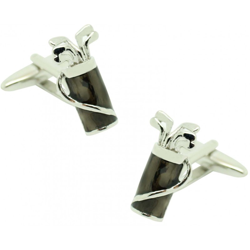 Des jumeaux de chemise Un sac de golf gris réalisés en acier et revêtus de rhodium qui représente la forme d'un sac de golf où sont stockés les bâtons à utiliser pour pratiquer le golf.