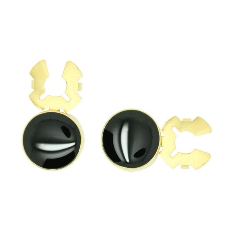 Couvre-boutons pour chemise Roundel exécutif noir réalisés en acier et recouverts de rhodium avec un vernis noir parfait pour toute occasion formelle.