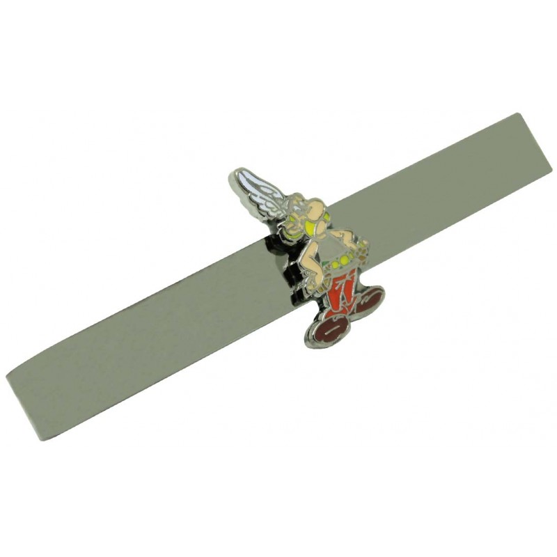 Je ne sais pas réalisés en acier avec bain en rhodium noir et émaillés dans les couleurs du personnage de bande dessinée Asterix qui représente le dessin d'Asterix dans les thées des aventures d'Asterix et Obelix.