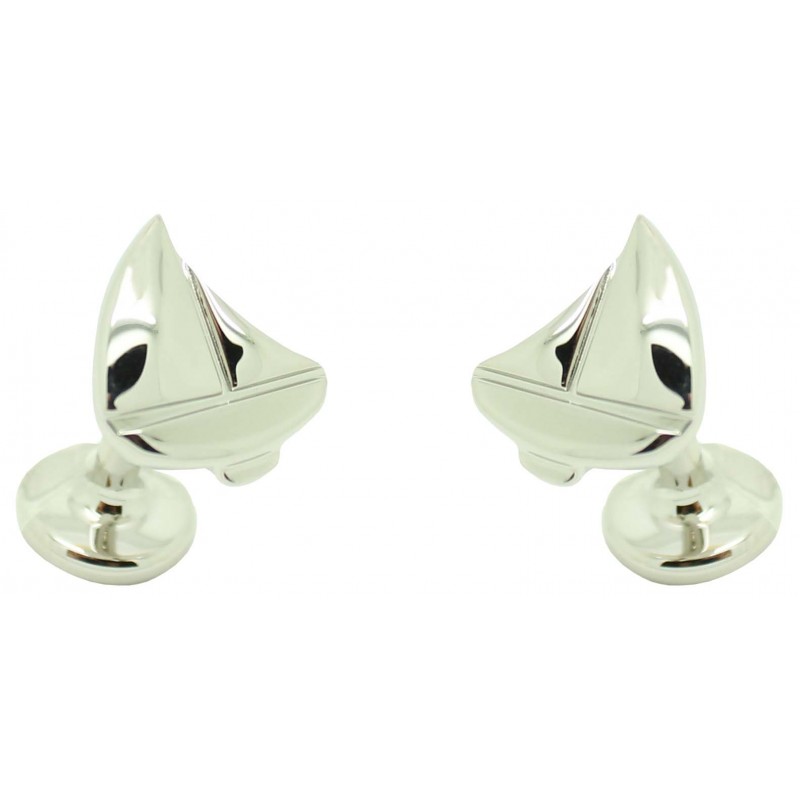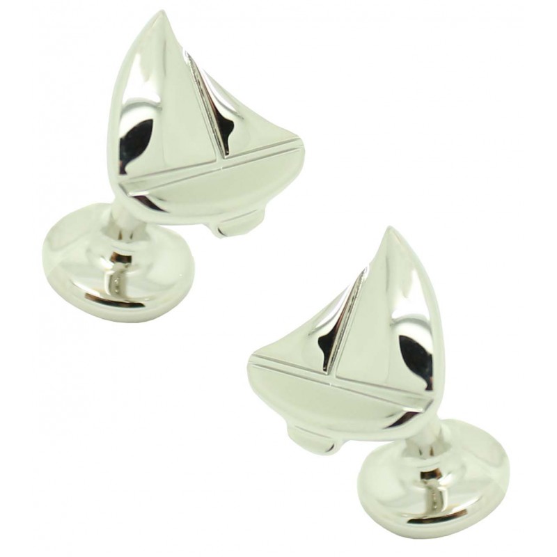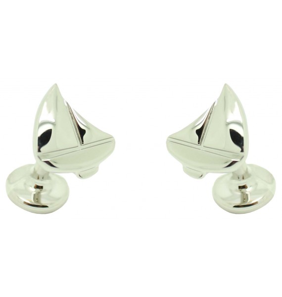 Des jumelles pour chemise en forme de Bateau de voile fabriqué en laiton et baigné en rhodium de la plus haute qualité.