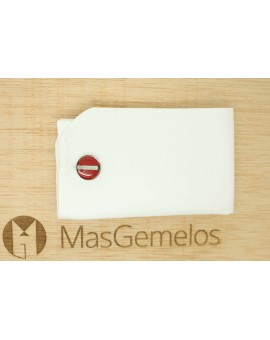 Des jumelles pour chemise de forme ronde émaillée en couleur ROUGE et des lettres par Hugo Boss fabriqué en laiton et baigné en rhodium de la plus haute qualité.