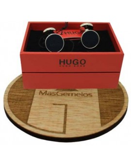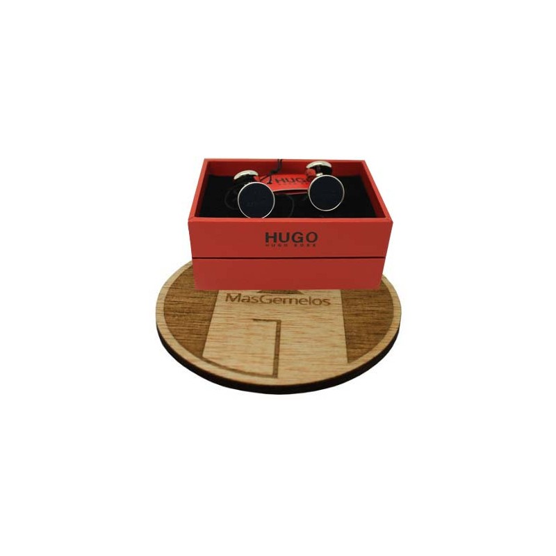 On présente ce design roundel bleu marine classique HUGO , pièce polie à la main avec logo gravé en fermeture fixe qui fournit une subtile distinction étant l'une des marques de luxe les plus célèbres pour homme en costumes et accessoires.