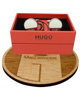 On présente ce design roundel blanc élégant HUGO , pièce polie à la main avec logo gravé en fermeture fixe qui fournit une subtile distinction étant l'une des marques de luxe les plus célèbres pour homme en costumes et accessoires.