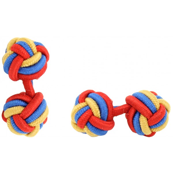 Les jumeaux élastiques Seda avec forme de boule en couleur chameau, bleu cobalt et rouge.