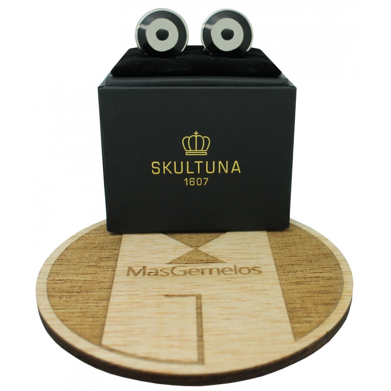 Boutons de manchette bomber argentés de forme circulaire en noir et blanc de Skultuna