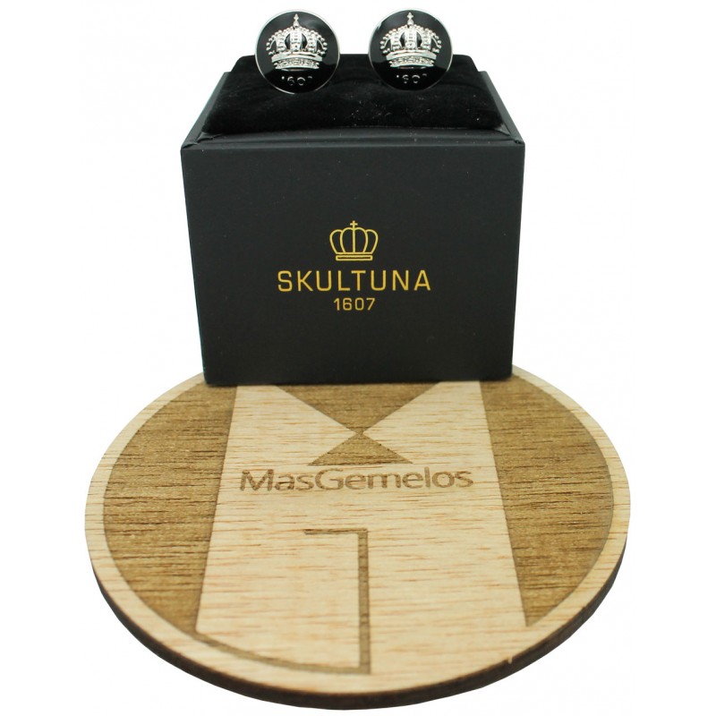 Les boutons de manchette couronne originaux du fondateur de Skultuna, le roi Charles IX de Suède et l'année de fonction en 1607. Le modèle le plus vendu en Scandinavie.