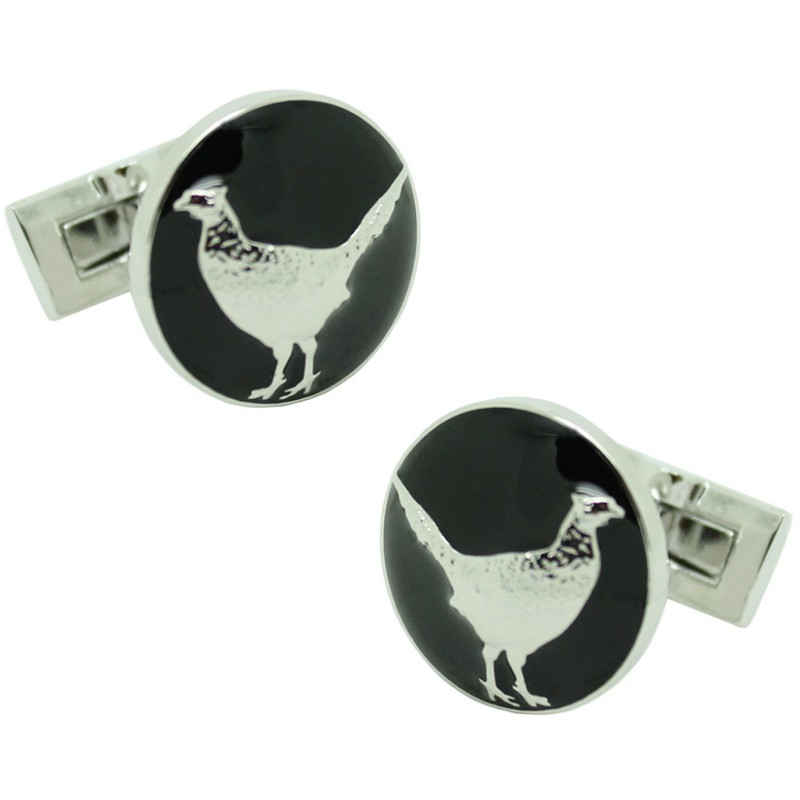 Des jumeaux pour chemise de faisan de chasse by Skultuna avec fond Noir et argenté, une des marques de bijoux les plus reconnues provenant de Suède et en plus des plus anciennes du monde fondée en 1607 et qui est portée par la Maison Royale de Suède.