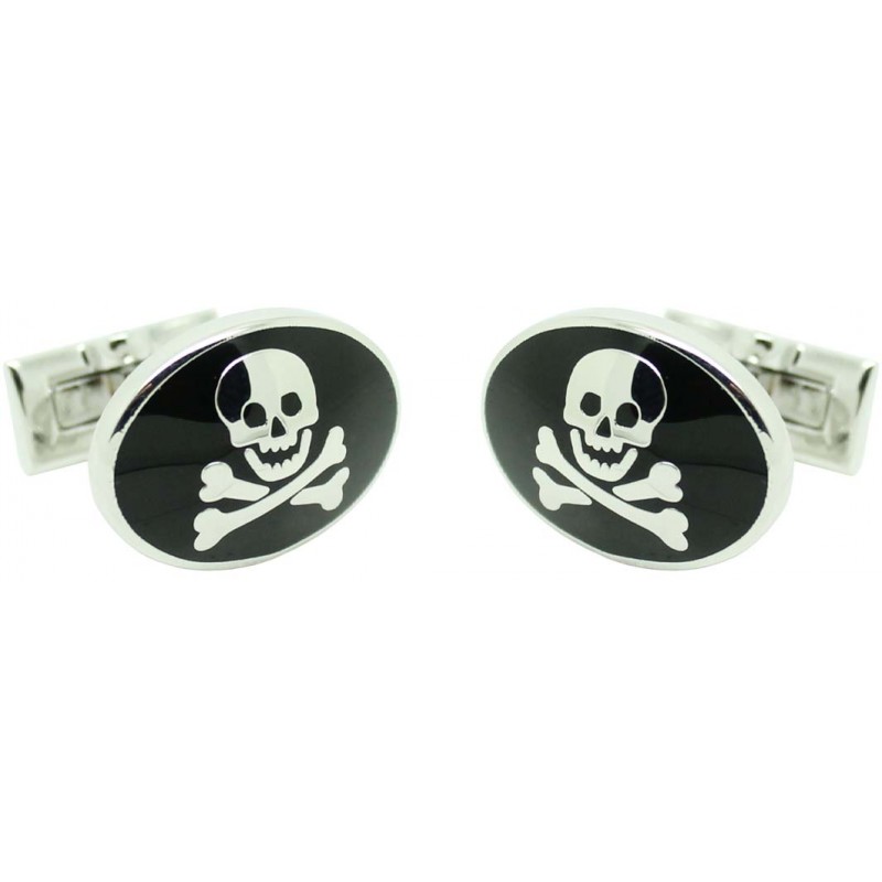 Des jumeaux pour la chemise de Crâne ondulé by Skultuna avec fond noir et baigné en rhodium, l'une des marques de bijoux les plus reconnues provenant de Suède et en plus des plus anciennes du monde fondée en 1607 et qui porte la Maison Royale de Suède.