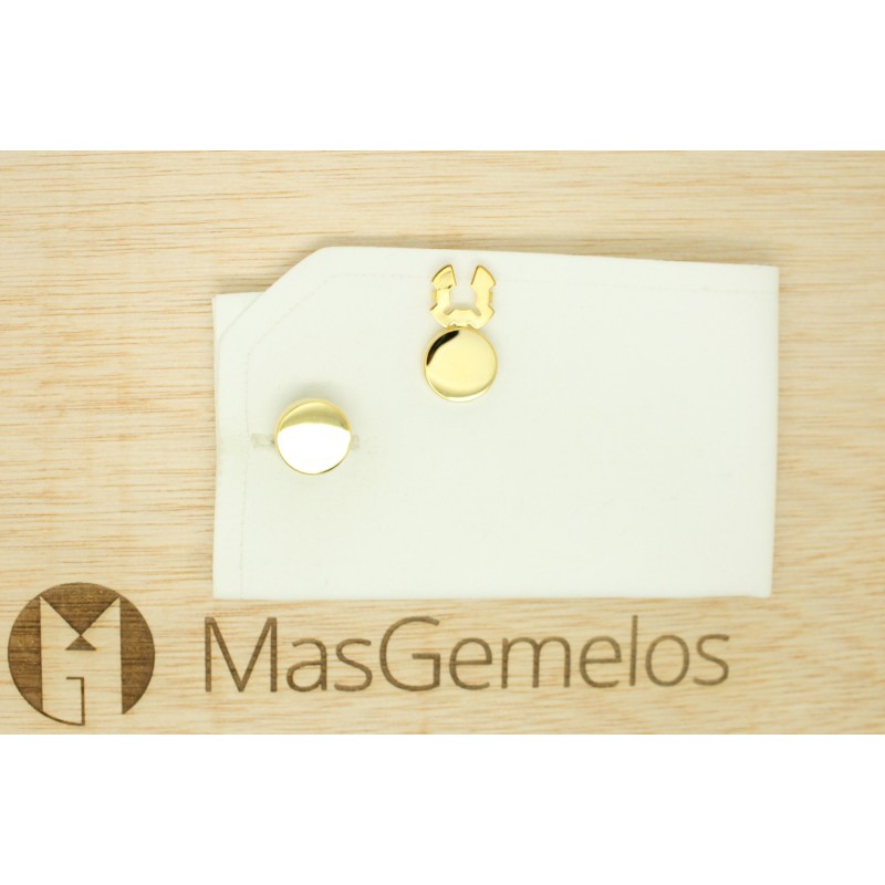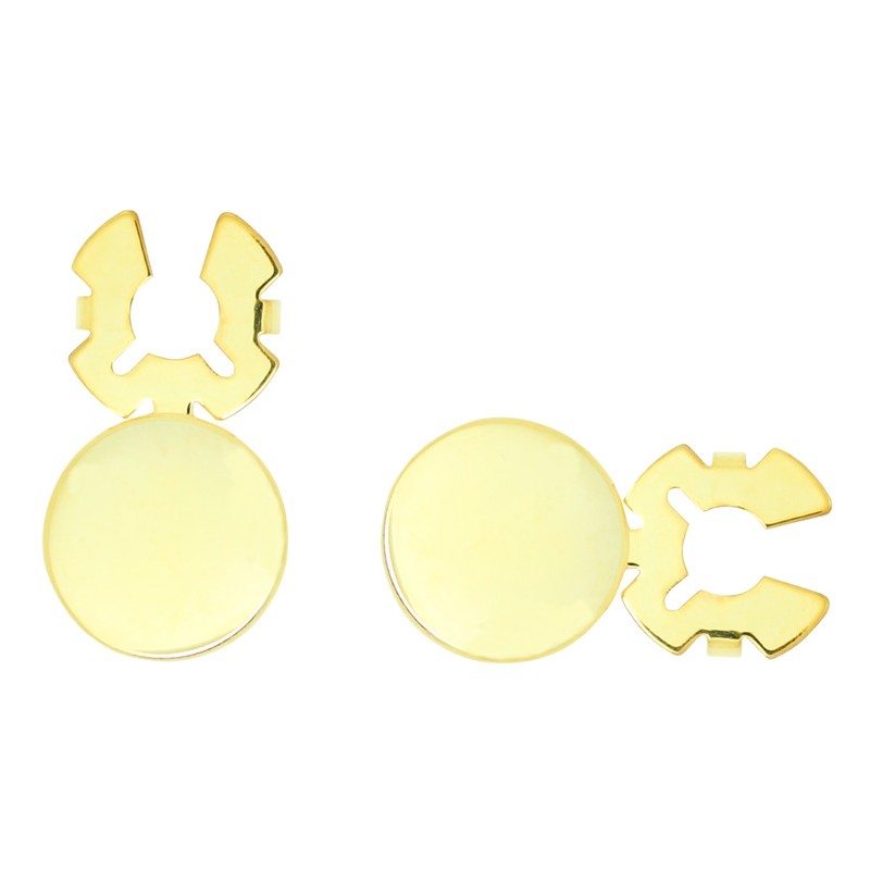 Chiusura dei bottoni in oro liscio con sistema di aggancio posteriore, valido per qualsiasi bottone della camicia.