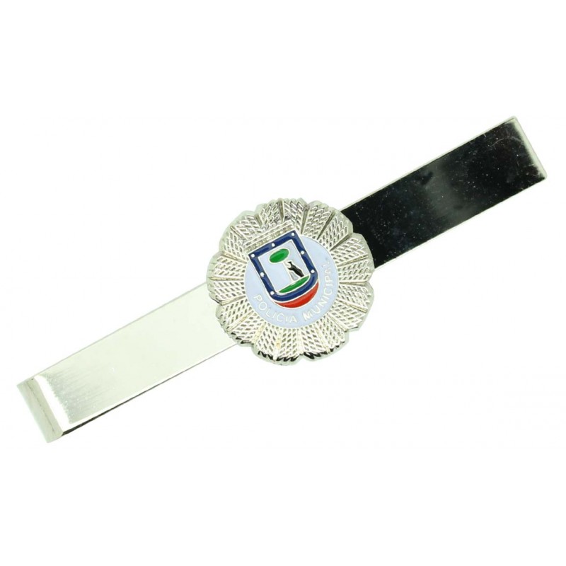 Calciatore di cravatta per camicia realizzati in acciaio con bagno in rodio e smaltati nei colori della targa ufficiale di Madrid, che rappresenta la targa del corpo locale della Polizia Municipale di Madrid e che si trova all'interno dei Corpi e Forze di sicurezza dipendenti dall'Aula Comunale di Madrid.