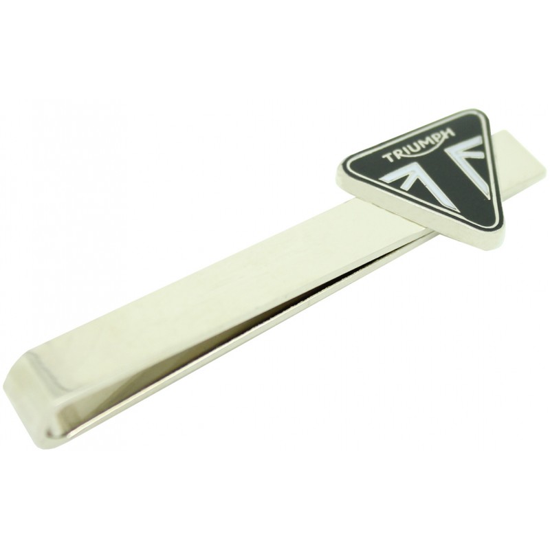 Stiletto di cravatta logo moto Triumph motociclette con smalto in bianco e nero.