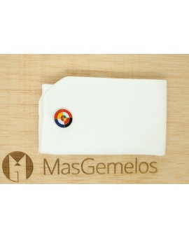 Gemelli per Eurofighter l'aereo, realizzato in acciaio e rivestito di rodio, rappresenta la bandiera dei quattro paesi che promuovono il progetto dell'aereo da combattimento nel settore della difesa europea: Spagna, Francia, Italia e Germania.