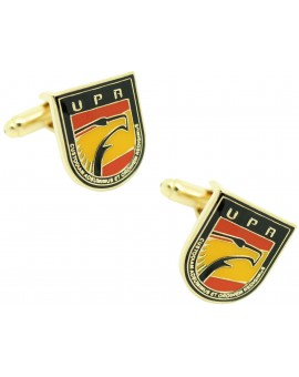Gemelli per camicia Unità di prevenzione e reazione UPR realizzato in acciaio e battuto in rodio dorato che rappresenta l'unità della Polizia Nazionale che è stata costituita per aiutare le unità di UIP essendo il suo intervento in gravi situazioni di crisi coinvolte in grandi operazioni di polizia e in operazioni di narcotraffico.