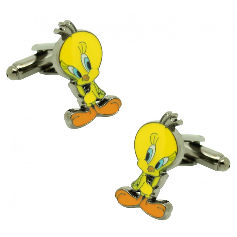 Camicie Piolin in acciaio e bagnate in rodio raffiguranti l'uccello giallo Piolin