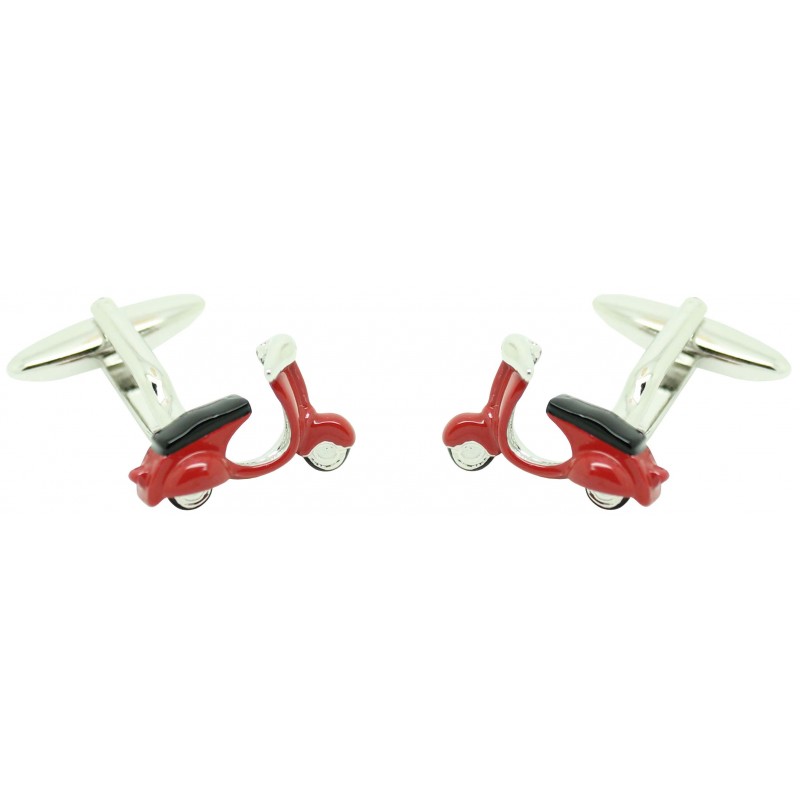 Gemelli per camicia Vespa rosso realizzato in acciaio e rivestito di rodio che rappresenta una moto Vespa originale in rosso con il massimo dettaglio e di alta qualità in 3D.