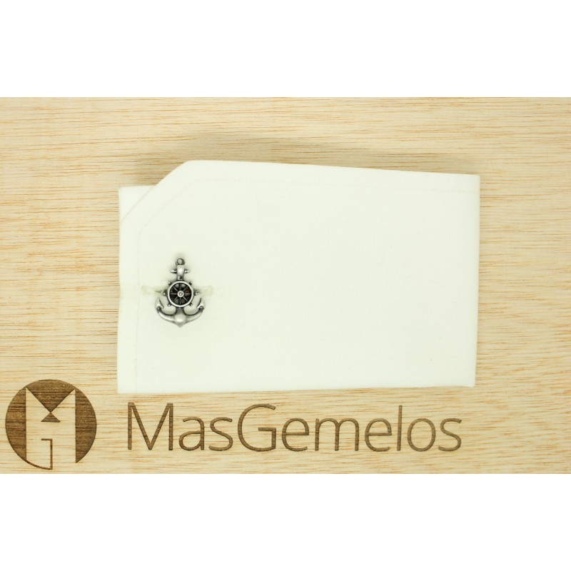 Gemelli per camicia con ancora di barca con timone integrato nell'ancora del Club Naútico.